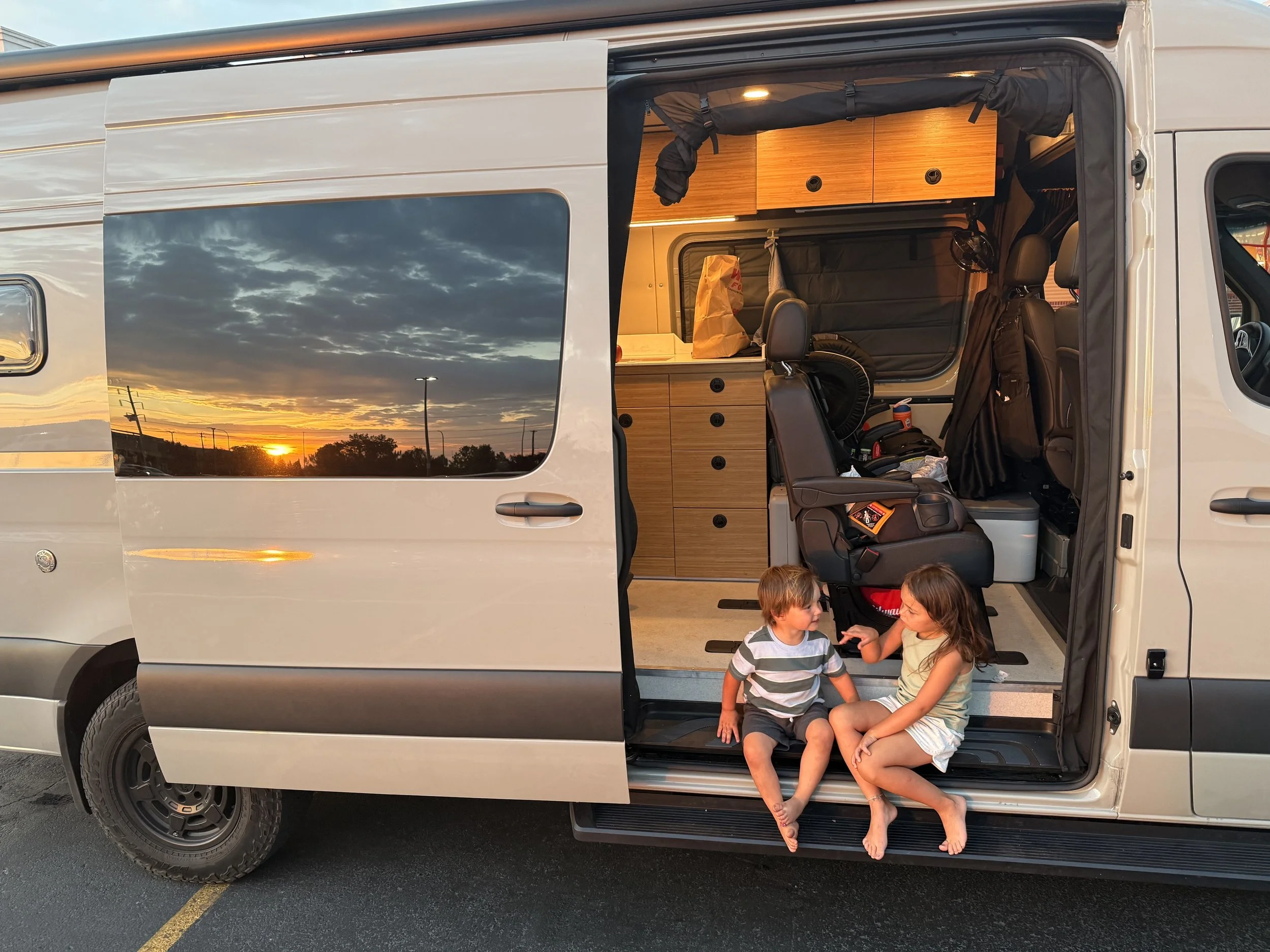 This morning we packed up our campsite and drove to Idaho Falls. We dropped off laundry for same-day wash & fold, then headed to the Idaho Falls Public Library. Xiomara and Kaleo enjoyed watching the koi in the library’s pond. They were also excited to discover that the children’s section has mini shopping carts for kids to use as they select books.