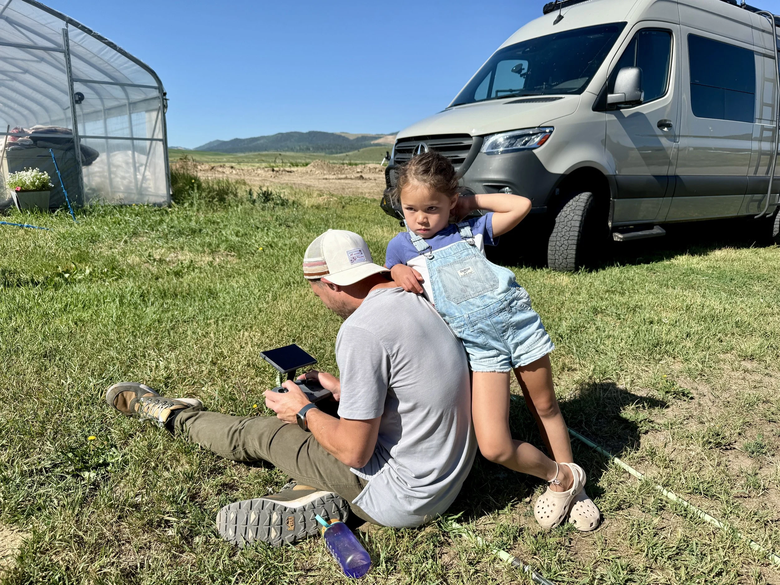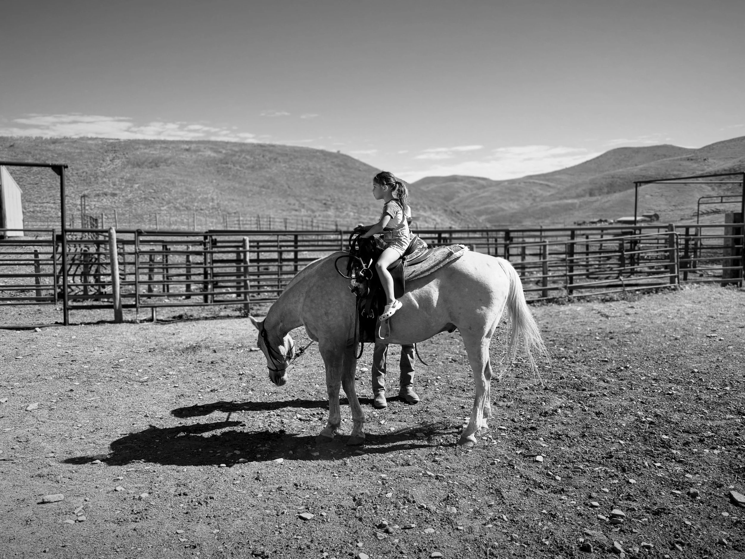 Jonny spent the day with Ty’s brother, Tennyson, doing a photo shoot at his family’s ranch. He captured their regular routine, which starts before dawn. Tasks for the day included installing posts for a new solar powered electric fence, herding cattle with dogs Tennyson trains, and harvesting hay. Today was extra special because Tennyson’s twelve-year-old son operated the tractor pulling a rotary hay rake on his own for the first time — a process that gathers cut hay into rows so it can dry evenly before baling. Xiomara, Kaleo, and I wandered over to the ranch later in the afternoon, where the kids were able to ride horses and go for a swim. Jonny finished out the day with a run alongside Ty and his cross country team.
