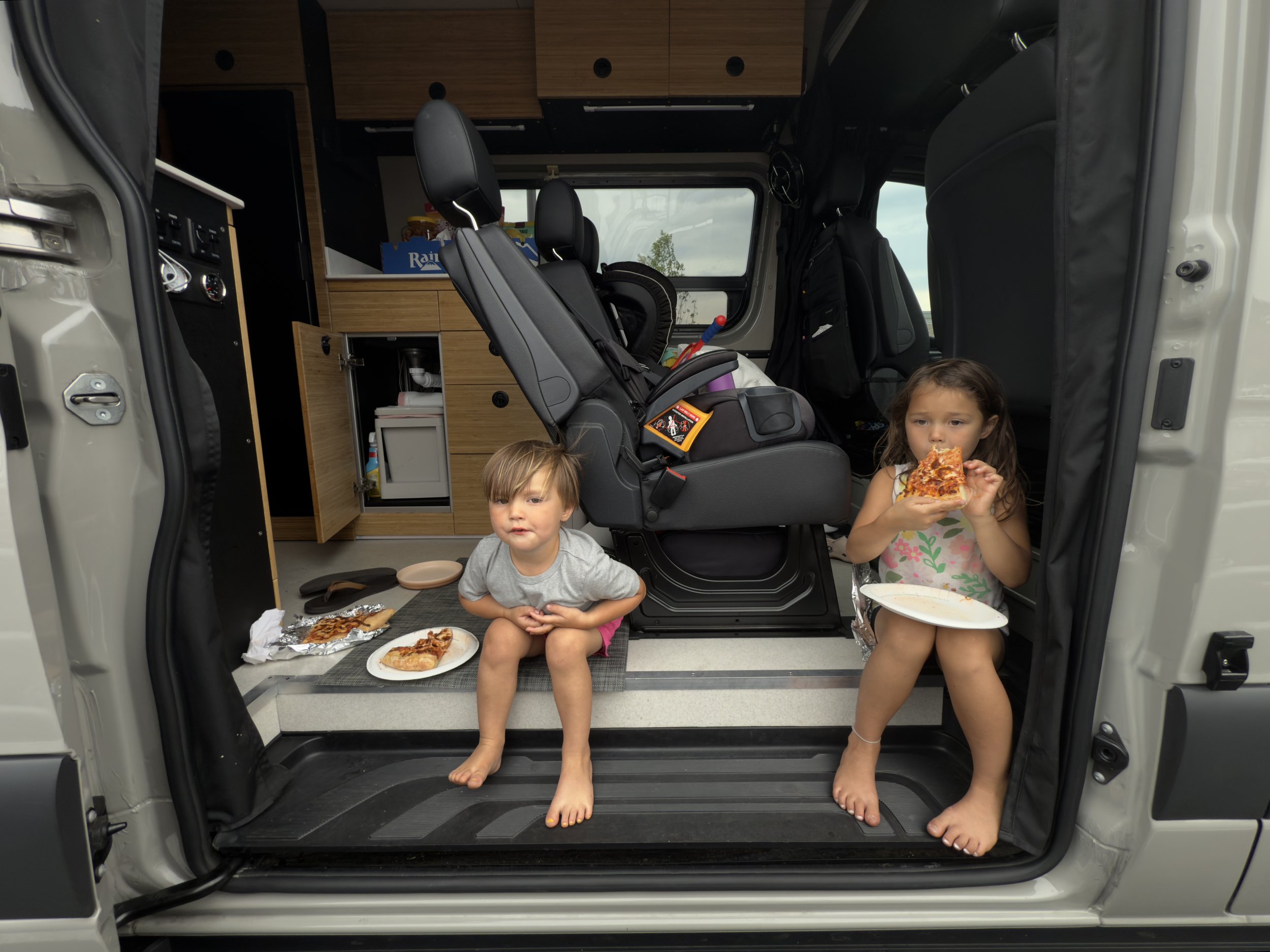 Before hitting the road we stopped at Costco to fill up on fuel and pick up some fruit (plus ~$100 worth of other things we found along the way. Does this happen to everyone else too?). We couldn’t pass up the convenience of food court pizza for dinner.